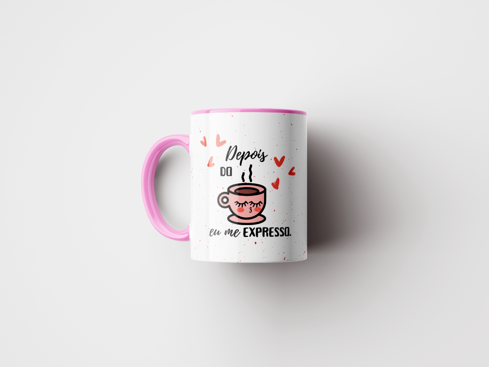 Caneca Depois do Café Eu Me Expresso - Caneca interior e alça rosa